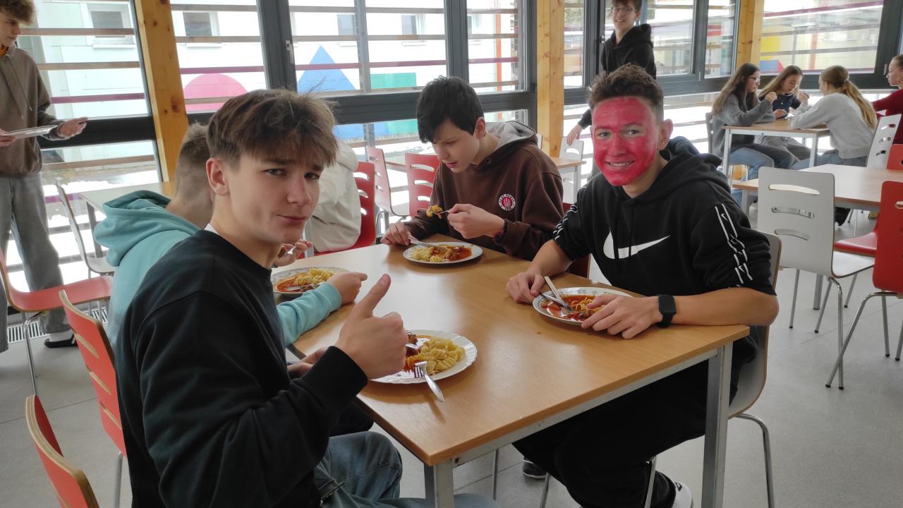 Červenou barvu učitelé zapojili i do výuky. Například ve třídách 7. A a 8. B se psal tzv. červený diktát. V jeho textu se objevovaly různé odstíny červené barvy a žáci jej psali na červený papír. Tato barva se objevila dokonce i v jídle. Někteří žáci si přinesli červenou svačinu a také školní jídelna se přizpůsobila barevnému dni – podávala se rajská polévka, maďarský guláš s těstovinami nebo gnocchi s boloňskou omáčkou a jako dezert jahodový tvaroh.