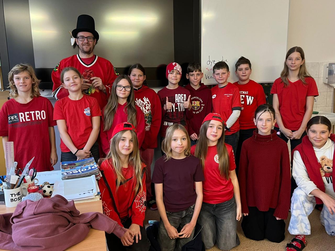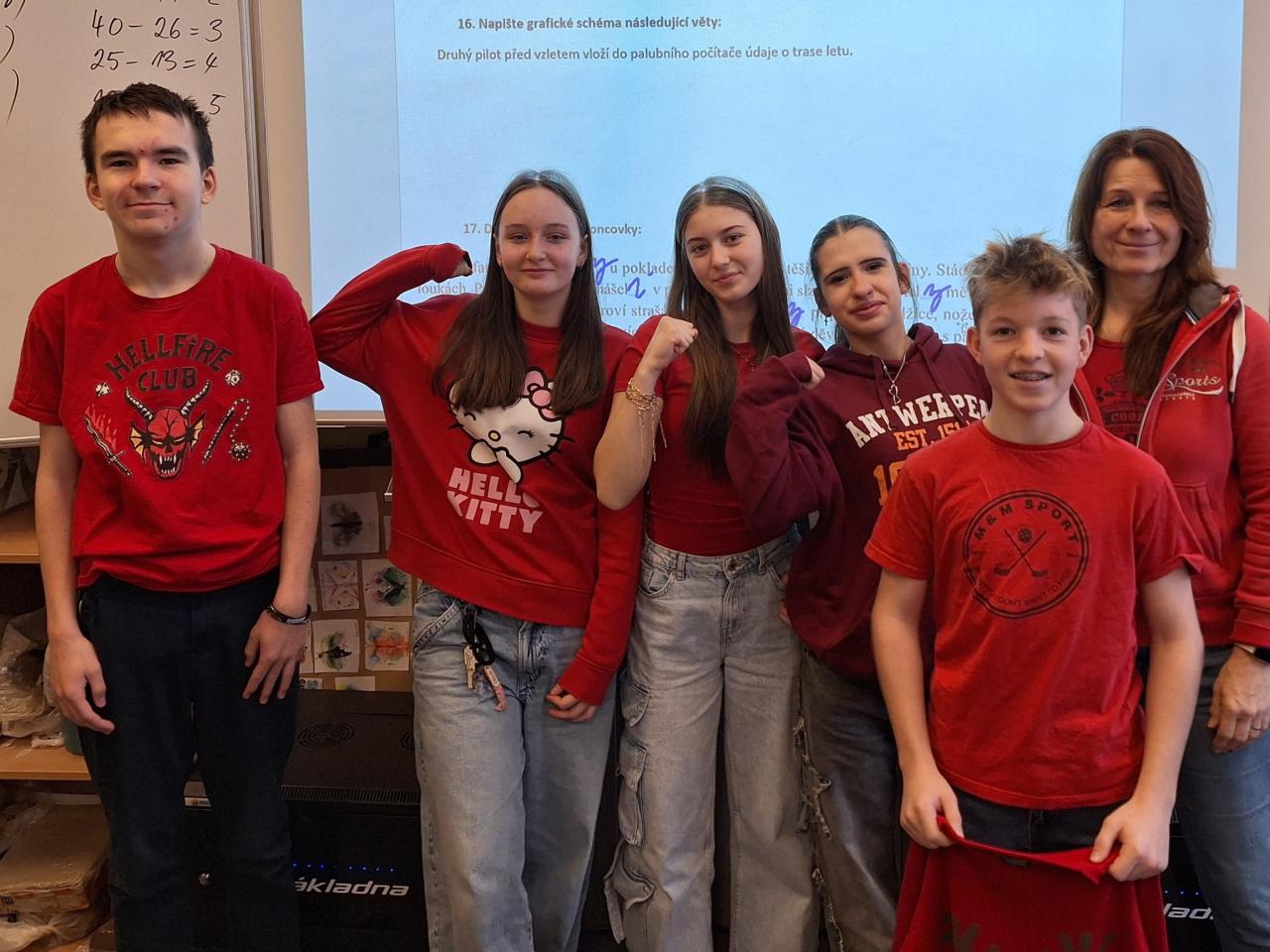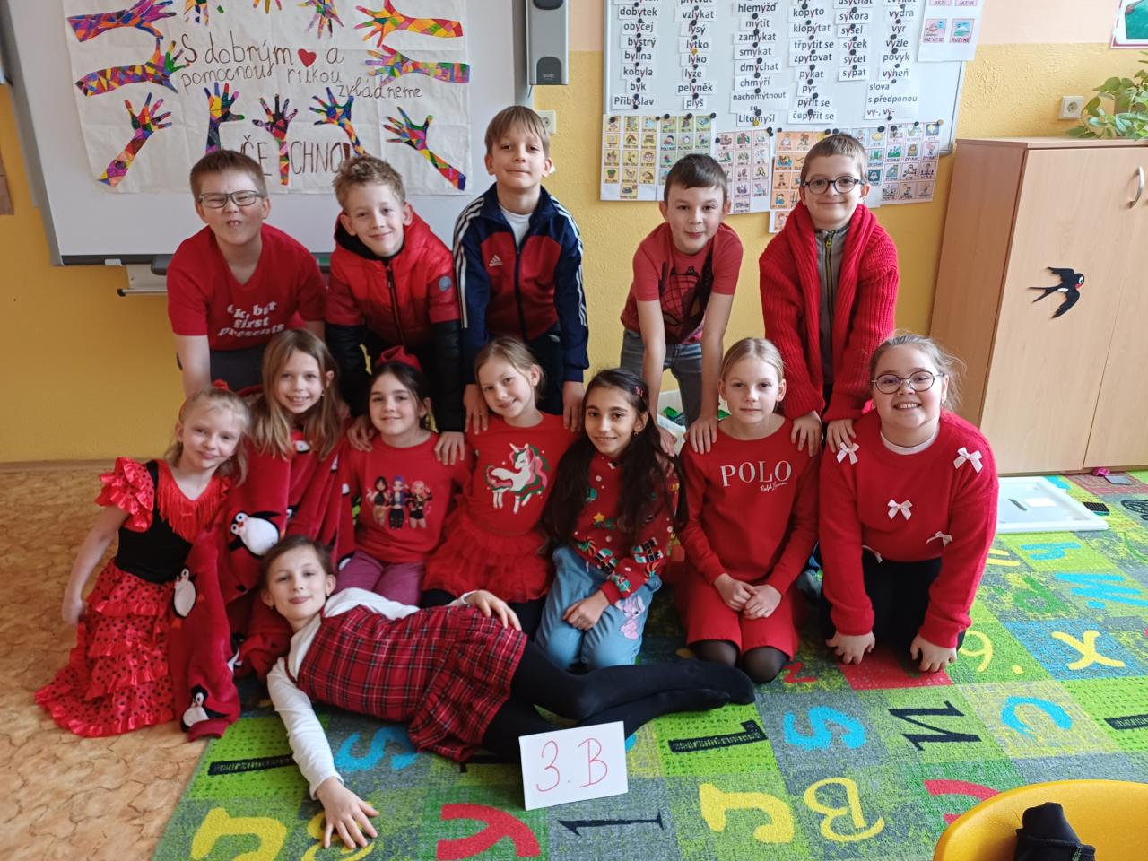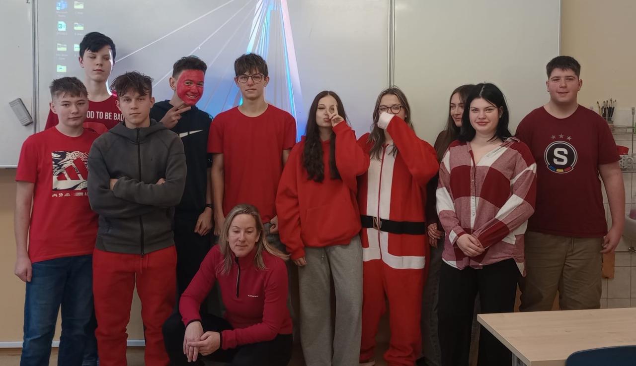 Pochmurné zimní úterý 13. ledna jsme si rozjasnili červenou barvou. Žáci, učitelé i paní kuchařky se oblékli do červeného, mnozí s vtipnými doplňky.