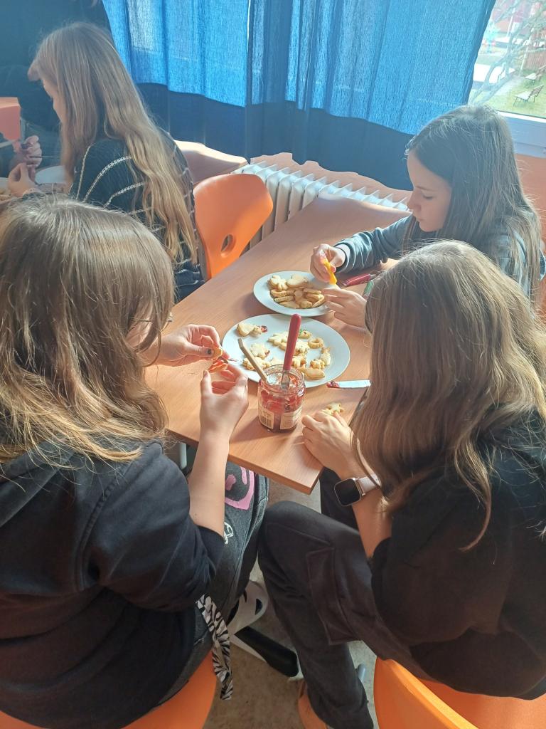 V prosinci jsme se v hodinách Člověk a svět práce ponořili do tradiční předvánoční atmosféry. Skupina, která měla výuku v kuchyni, se věnovala pečení vánočního cukroví – činnosti, která k závěru roku patří už po generace.